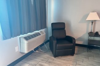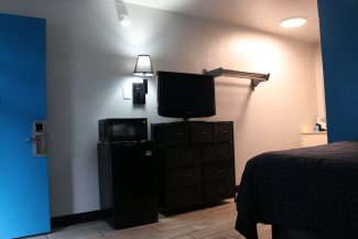 We offer 113 exterior corridor private efficiency suites in four buildings on a 4-acre campus with ample green space and parking. Premium cable television with wireless internet and free local calls are included. Each Suite has a shower/tub combination, refrigerator, and microwave. All Efficiency Units have self-controlled heating and air conditioning units with thermostats. We also offer ice machines, vending machines, and washing machines. On-site management is available 24 hours / 7 days a week.